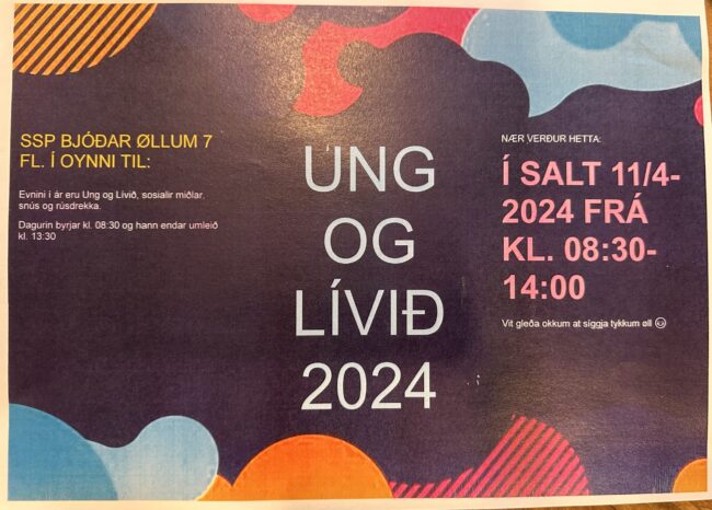 “Ung og Lívið – Suðuroy” SSP-ráðgevingin fegnast, at skúlar, barnaverndartænasta, politi, ungdómshús og tannlæknar í Suðuroy samskipaðu tiltakið fyri øllum næmingum í 7.fl. Afturat teimum lokalu, var eisini framløga um Liv Lívið og Títt Rúm. 60 næmingar hittust í Salt, til frálæru, upplýsing, spæl, hugna og samstarv. Fyriskipararnir løgdu í ár dent á sosialu miðlarnar,…