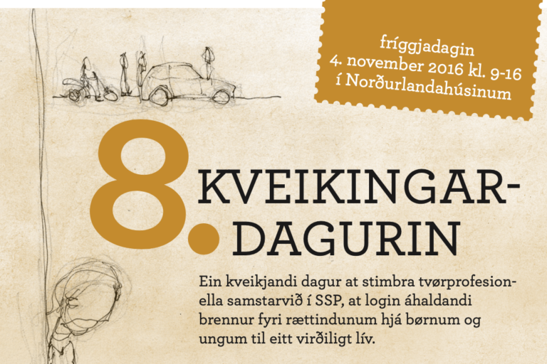 SSP kveikingardagur 2016 Fríggjadagin 4.novembur 2016 verður skipað fyri kveikingardegi í Norðurlandahúsinum. Hetta er ein kveikjandi dagur at stimbra tvørprofesion-ella samstarvið í SSP, at login áhaldandi brennur fyri rættindunum hjá børnum og ungum til eitt virðiligt lív. SSP er eitt samstarv ímillum skúla, sosialar myndugleikar og politi.