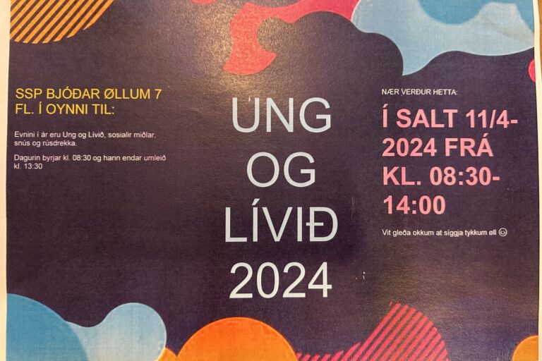 “Ung og Lívið – Suðuroy” SSP-ráðgevingin fegnast, at skúlar, barnaverndartænasta, politi, ungdómshús og tannlæknar í Suðuroy samskipaðu tiltakið fyri øllum næmingum í 7.fl. Afturat teimum lokalu, var eisini framløga um Liv Lívið og Títt Rúm. 60 næmingar hittust í Salt, til frálæru, upplýsing, spæl, hugna og samstarv. Fyriskipararnir løgdu í ár dent á sosialu miðlarnar,…