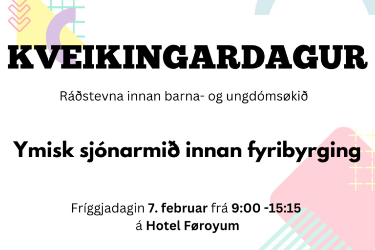 Kveikingardagur 2025 – við denti á ymiskum sjónarmiðum innan fyribyrging. Í dag varð 13. Kveikingardagurin lokin á Hotel Føroyum við evninum: “Ymisk sjónarmið innan fyribyrging”. Dagurin var settur saman av fleiri dugnaligum fyrilestrarhaldarum, ið á ymsan hátt løgdu fram um, hvussu vit í felag kunnu skapa eitt sterkt og trygt barna- og ungdómslív í Føroyum:…